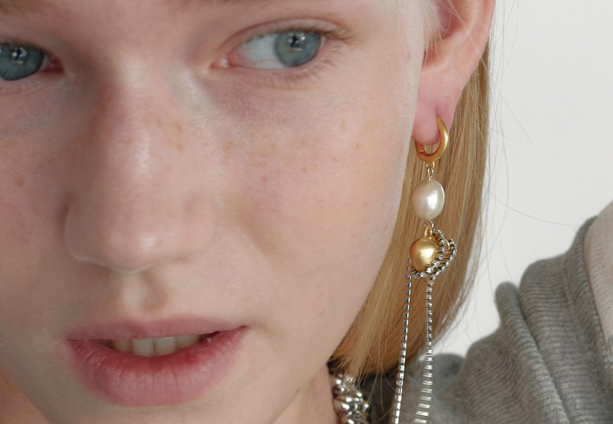 Japan exclusive Pearl and Crystal Unbalanced Earcuff【MWER251101】